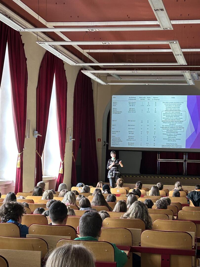 Krew płynąca w żyłach i tętnicach odgrywa bardzo ważną rolę w życiu każdego człowieka, dlatego nie bez powodu nazywamy ją życiodajnym płynem. W ramach współpracy z Pomorskim Uniwersytetem Medycznym w Szczecinie, uczniowie klas 3D i 2B, w dniu 20.04.2023, wysłuchali wykładu „Co drzemie we krwi – źródle informacji o naszym zdrowiu?”. Spotkanie prowadziła prof. dr hab. n. med. Barbara Dołęgowska kierownik Katedry Mikrobiologii, Immunologii i Medycyny Laboratoryjnej.